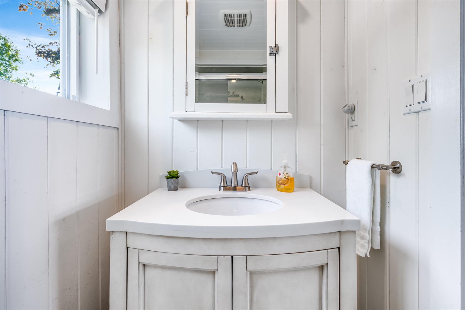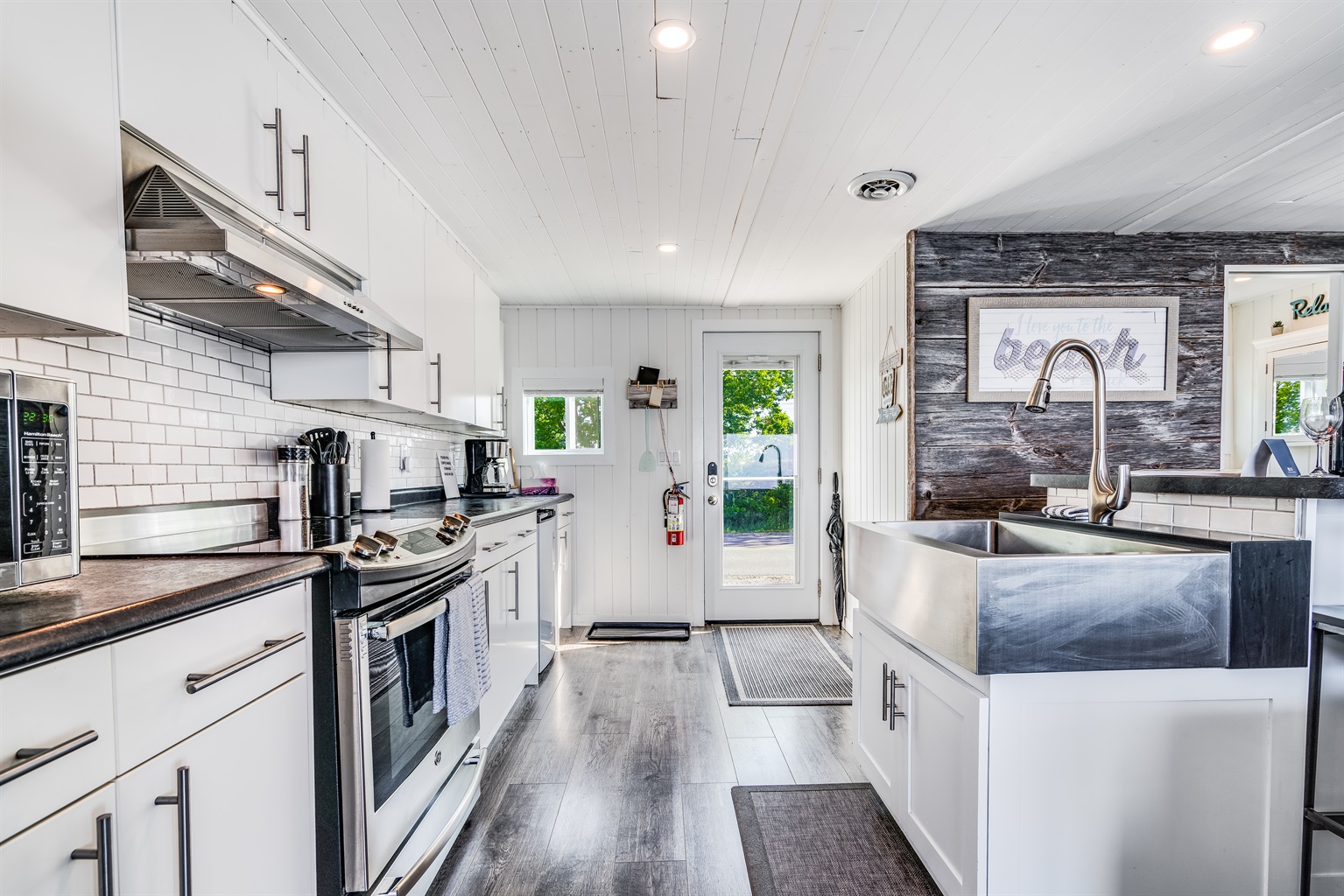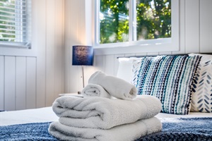 The cottage's new and modern kitchen is supplied with stainless steel appliances and has all the essentials needed to cook with. Guests will find fresh towels, linens, complimentary soaps, coffee, and tea, in the cottage, ensuring that they have everything they need when away from home.