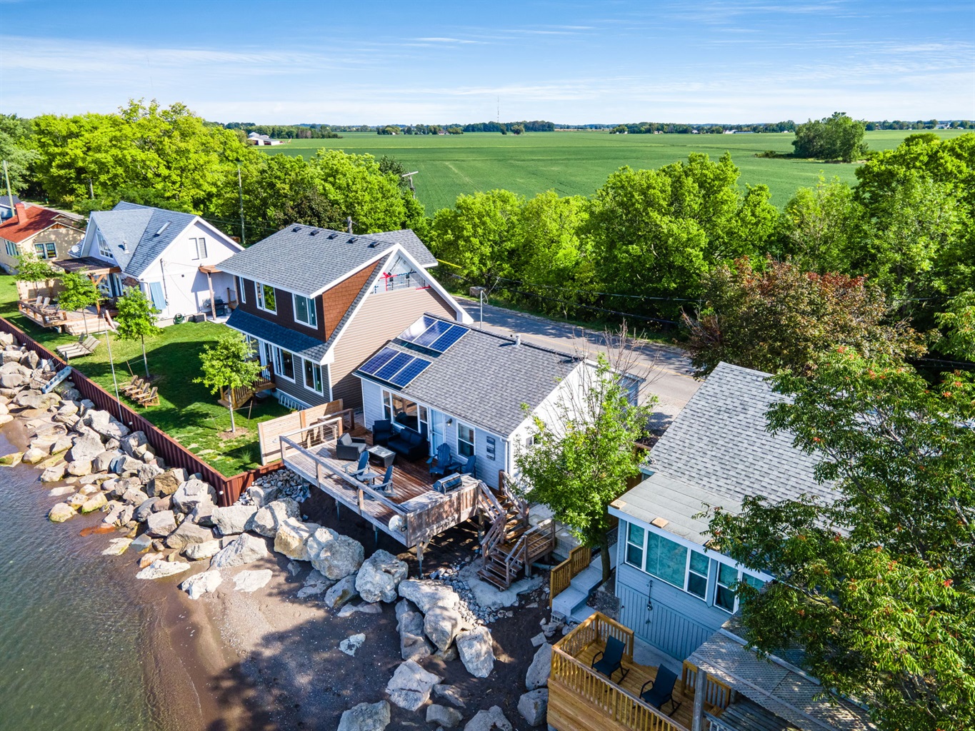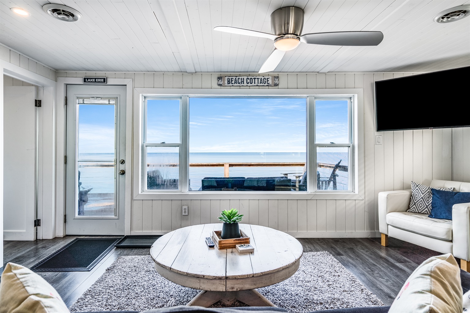 2 Bedrooms • 1 Bathroom 1 Bath • Sleeps 2-4This modern and trendy beach house is the perfect vacation spot for nature lovers who want to relax and unwind in a serene and tranquil lakefront setting. The cottage is located on the shores of Lake Erie and is nestled in a quiet lakefront area with a beach and a relaxing hot tub that offers stunning views of the lake's sunset.