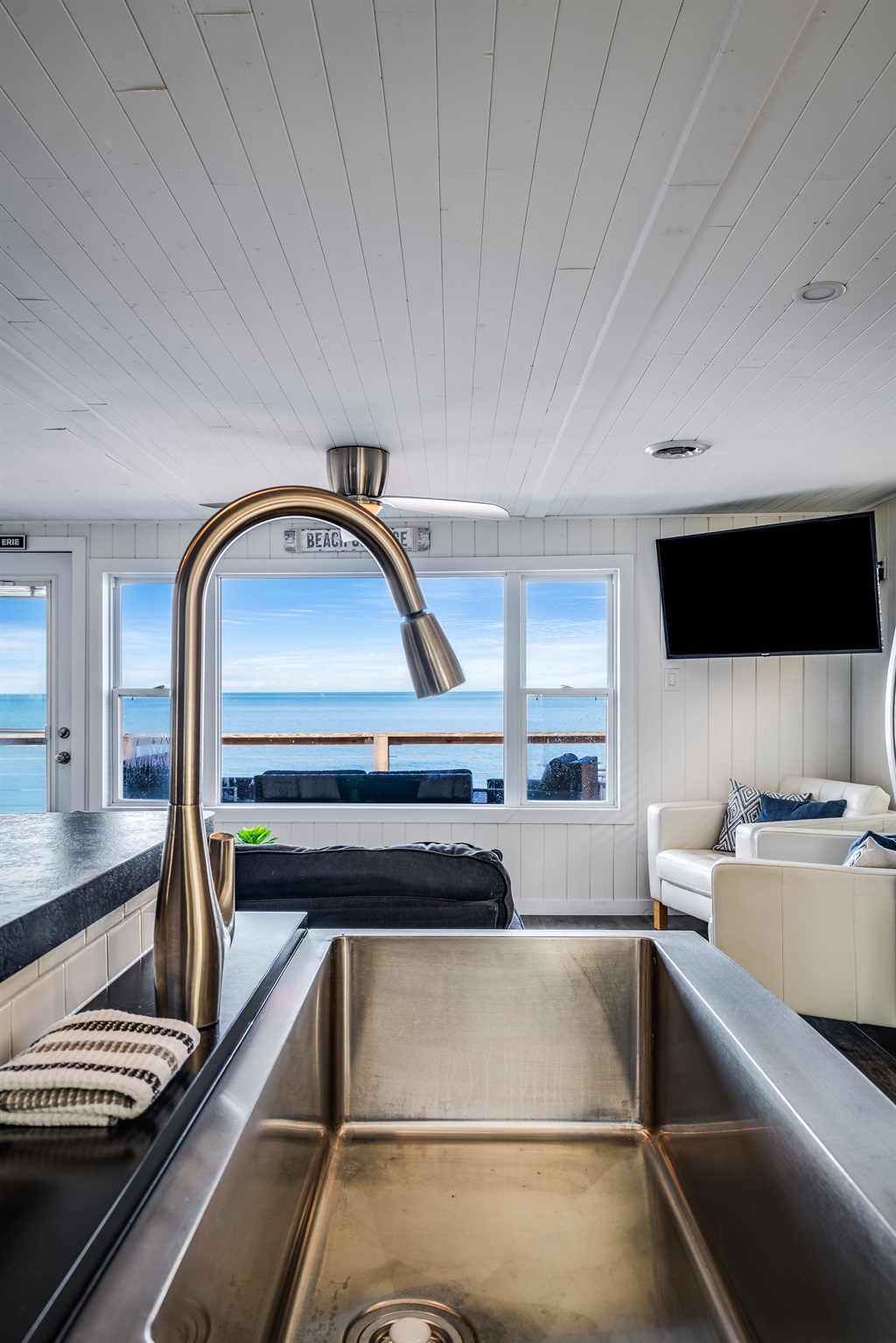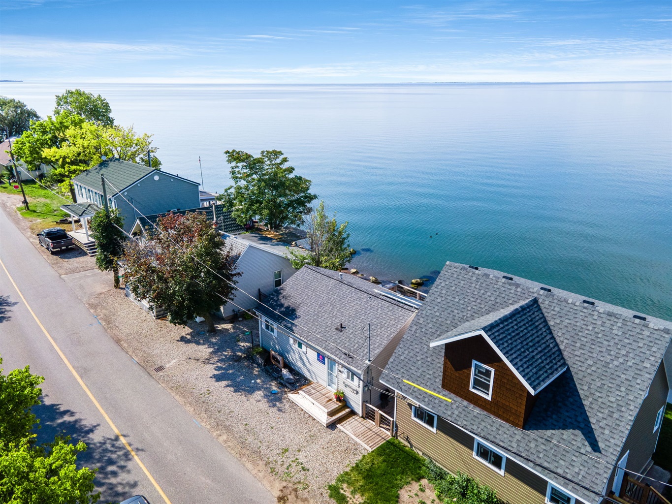The cozy 2 bedroom cottage is sparkling clean and extremely comfortable, making it the perfect getaway for those seeking a relaxing and comfortable vacation. The beds are super comfy and full of luscious pillows, providing guests with a peaceful and restful night's sleep. The spacious bedrooms offer an unobstructed view of Lake Erie, adding to the relaxing and peaceful ambiance of the home.